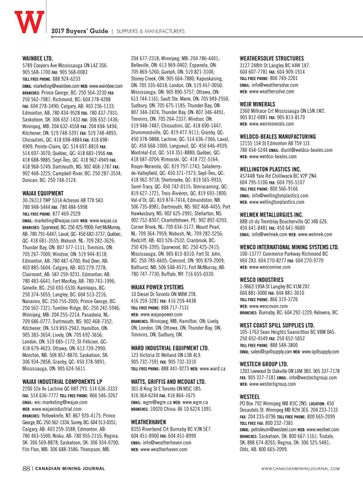 2200 52e Av Lachine QC H8T 2Y3. 514 636-3333 FAX: 514 636-7777 TOLL FREE PHONE: 866 546-3267 EMAIL: wic-marketing@wajax.com WEB: www.wajaxindustrial.com BRANCHES: Yellowknife, NT: 867 920-4175; Prince George, BC: 250 562-1334; Surrey, BC: 604 513-0351; Calgary, AB: 403 259-3588; Edmonton, AB: 780 463-5500; Nisku, AB: 780 955-2155; Regina, SK: 306 569-8878; Saskatoon, SK: 306 934-0700; Flin Flon, MB: 306 688-3586; Thompson, MB: