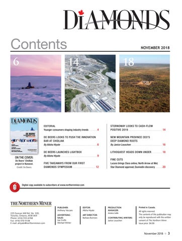 NEW MOUNTAIN PROVINCE CEO’S DEEP DIAMOND ROOTS By Janice Leuschen . . . . . . . . . . . . . . . . . . . . . . . . . . . . . . 16