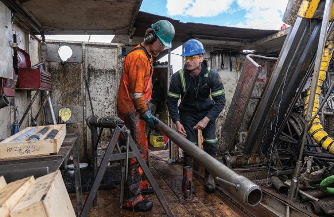 Below: A shaft at EMP Metals’ Viewfield lithium brine project in Saskatchewan. Below right: A drill rig at the Viewfield project. EMP METALS