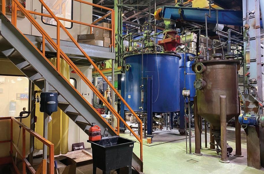 Above: The Dundee Sustainable Technologies industrial demonstration plant in Thetford Mines, Que., has a nominal capacity of 15 tonnes of gold concentrate per day. Left: The GLASSLOCK amorphous glass product sample pictured here contains 18% arsenic. DUNDEE SUSTAINABLE TECHNOLOGIES