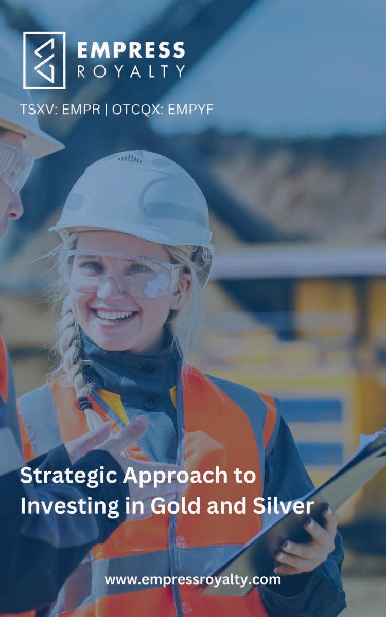 Empress Royalty is a global royalty and streaming creation company providing investors with a diversified portfolio of gold and silver investments. Since publicly listing in December 2020, Empress Royalty has built a portfolio of precious metal investments and is actively investing in mining companies with development and production stage projects who require additional non-dilutive capital. Empress Royalty applies a financially disciplined approach to investing in these cost-e ective operations with strong experienced management teams and excellent upside potential. This business model capitalizes on the stable cash flow and long-term capital gains of streaming and royalty investments which allow Empress Royalty to generate revenue and create value for its shareholders.