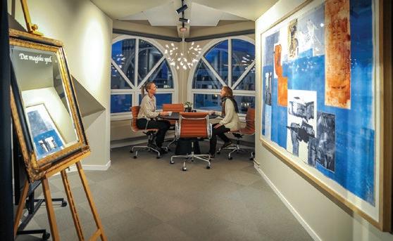 – I tillegg har vi nå hengt opp kunst i trapperommet. Og for oss er det viktig å berike både fellesarealer og kontorene våre med kunstverk. Det skaper trivsel og er helsefremmende. Man blir nysgjerrig og har noe hyggelig å hvile øynene på, sier Jakhelln.