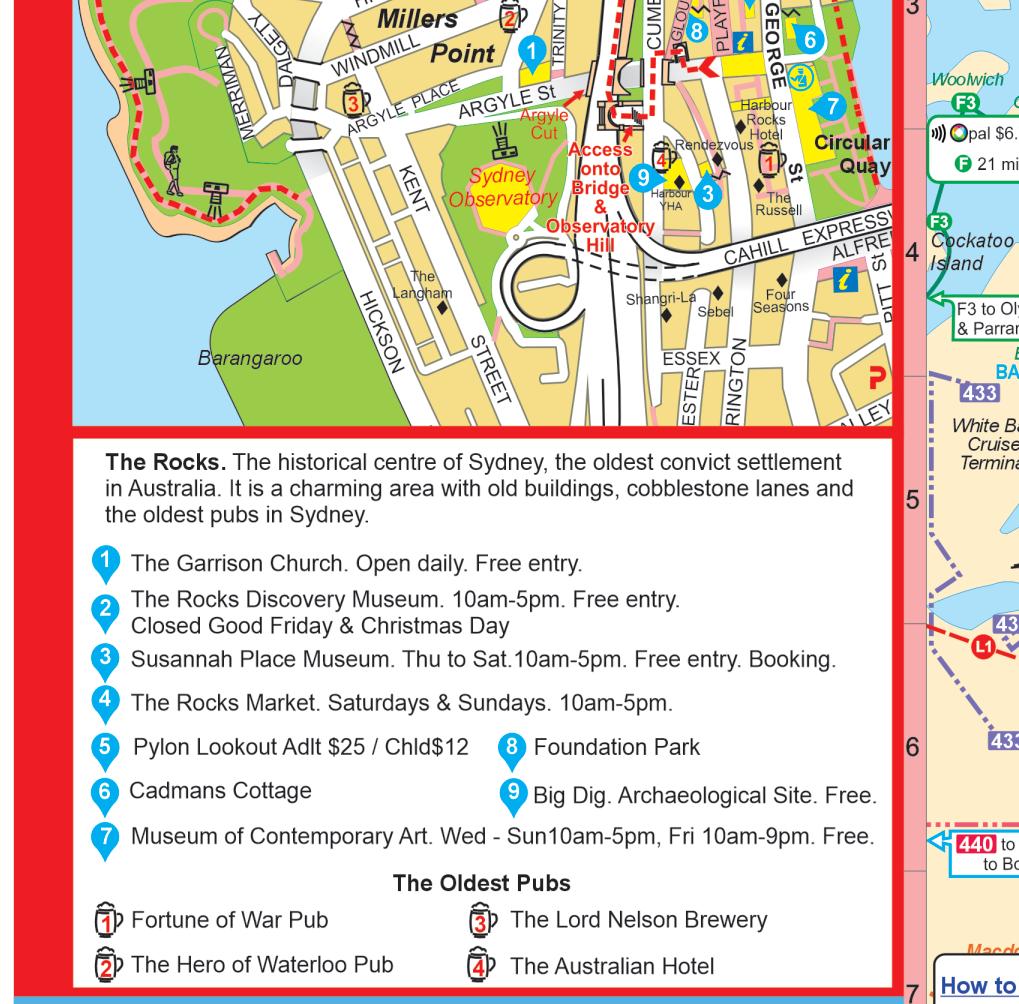 » Look out for the white hats and bright red outfits of the City of Sydney Ambassadors and say hello. They are there to help visitors enjoy Sydney. You’ll find them at the Overseas Passenger Terminal and White Bay Cruise Terminal, as well as other tourist hotspots across the city centre. Customs House just outside Circular Quay also has a visitors’ centre, with maps and other great guides.