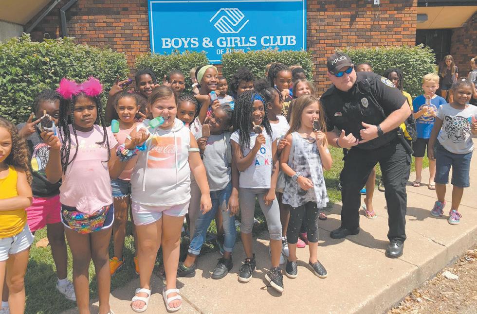 Children at the Alton Boys & Girls Club enjoy ice cream with the Alton police.
