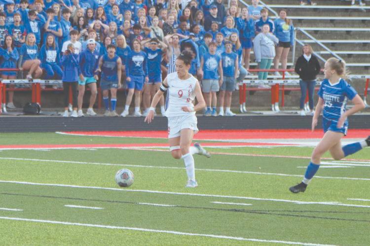 Alton vs. Marquette in girls soccer Annaleigh White clears the ball for the Oilers against Belleville Althoff