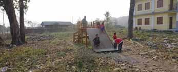en de glijbaan, gemaakt van recuperatiehout. Plattelandsscholen hebben niet vaak een speelterrein, en deze speeltuigen zijn voor de kinderen erg bijzonder en moedigen hen aan om naar school te komen.