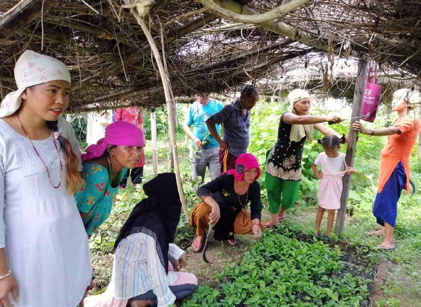 In bovenstaande foto zien we de moeders aan het werk. Een extra motivatie is dat ze ook een deel van de jonge plantjes naar huis