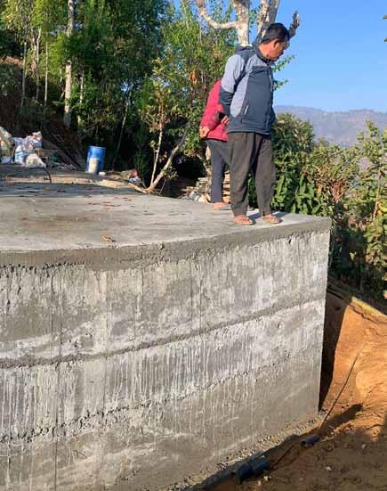 Roshi Rural Municipality. De werfleider ter plaatse, Utpal Lama, liet ons net voor het drukken van dit tijdschrift weten dat de werken aan de tweede watertank volop bezig zijn. Ondertussen is reeds tachtig procent van de werken voltooid! In de volgende Bikas editie meer hierover.