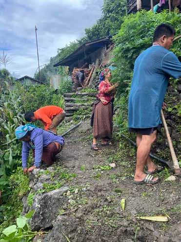Ondertussen hebben Bishnu en Ram Chandra, de twee medewerkers van CEPP in Haku, weer bergen verzet. Er waren overlegmomenten met de ouders van de leer lingen in de vier dorpen van Haku. Men werkte met de leerlingen rond natuurbehoud, er waren trainingen rond hygiëne, er werd een grondige opkuis gehouden in de omgeving van de scholen maar ook in de dorpen en op en rond de paden en wegen er naartoe. Van huis tot huis ging men met de mensen praten over onderwijs, hygiëne, natuurbehoud enz. …