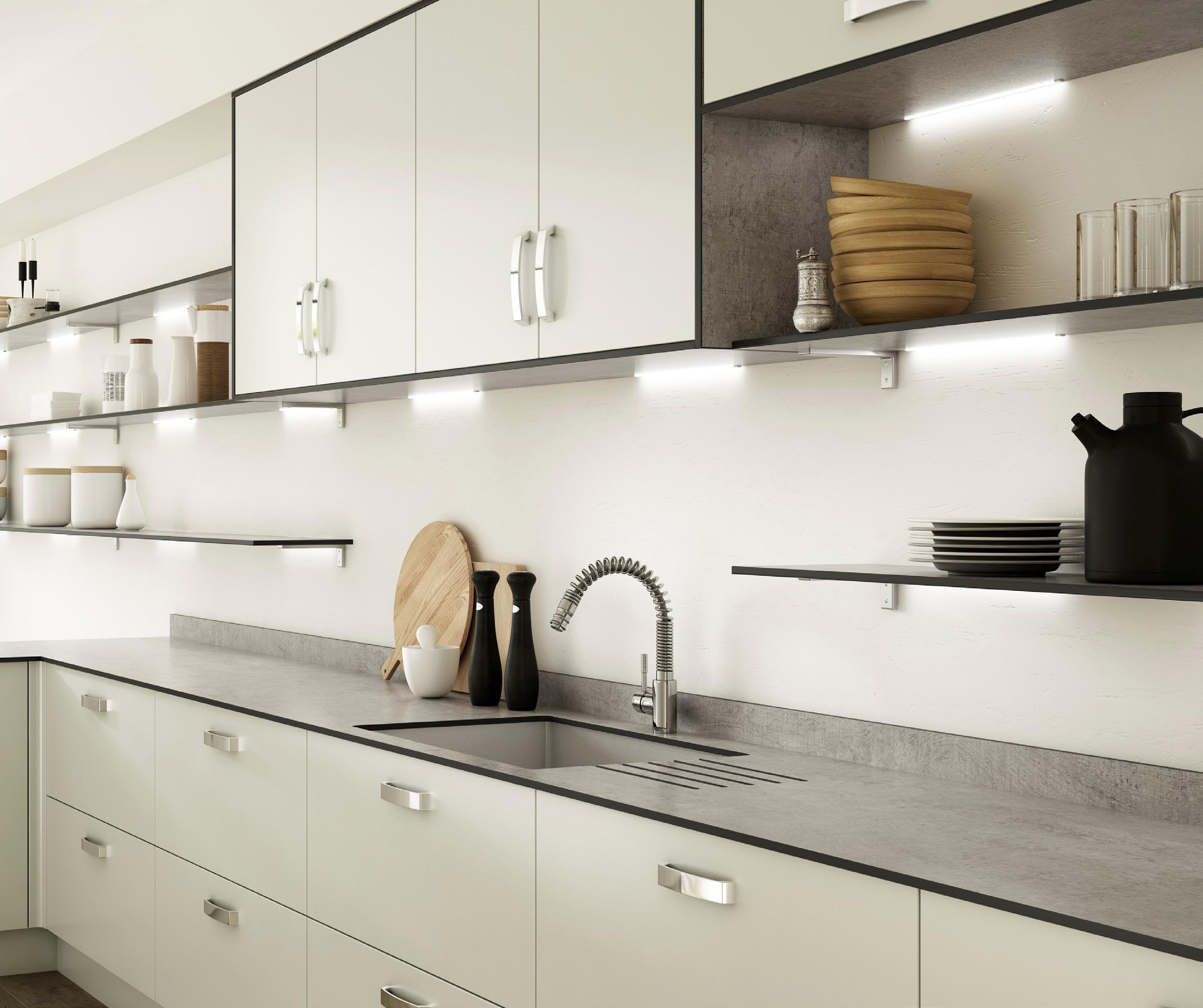 Inherently easy to clean, Bushboard Omega worksurfaces incorporate Sanitized® Actifresh that deters the growth of bacteria. It’s odourless, non-toxic and reduces microbe and bacteria growth by 99%.