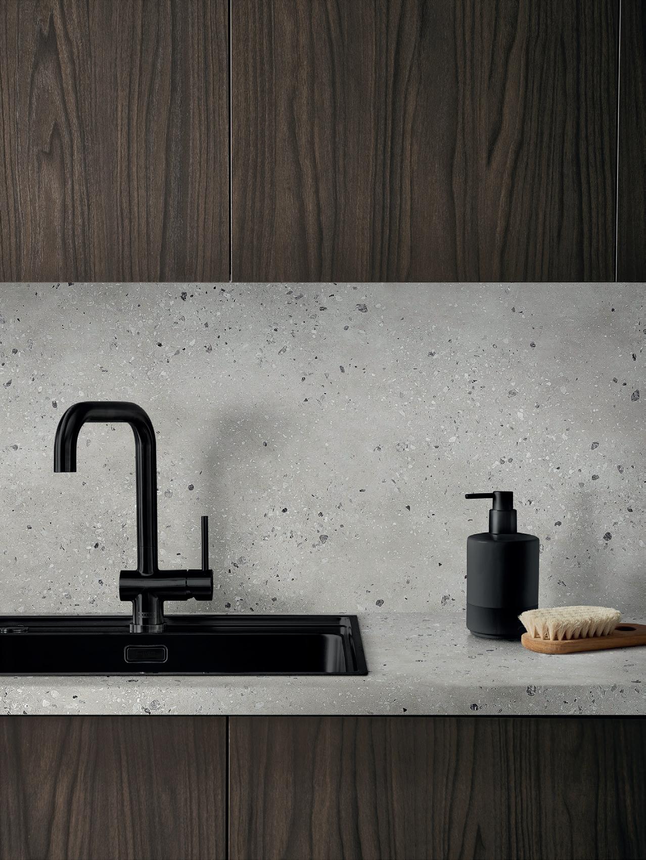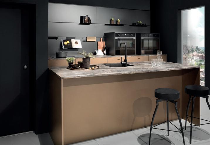 The new Bronze Metal kitchen concept by Rotpunkt in titanium KQ furniture with new colour option bronze metal (KQ stands for quality pressure laminate)