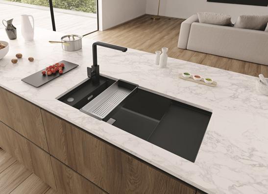 Fitted with a Neoperl aerator to give a champagnelike flow, the highly functional mixer tap has two easy-to-operate side levers and stands 366mm tall with a spout reach of 194mm.