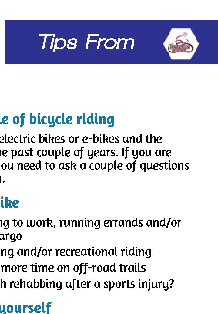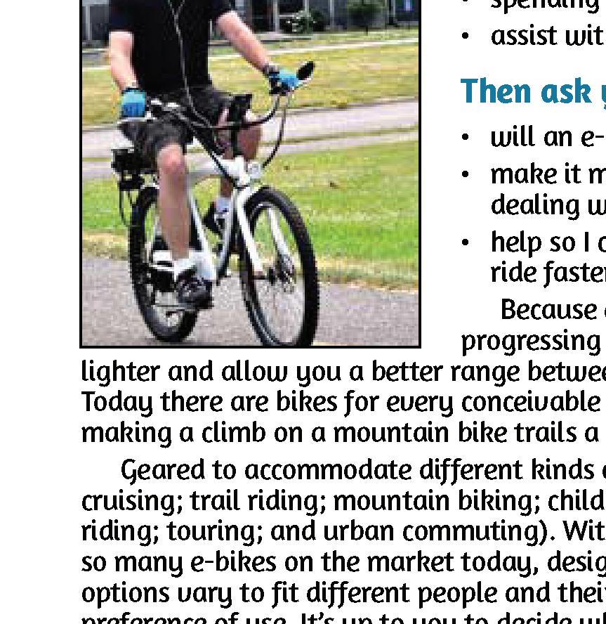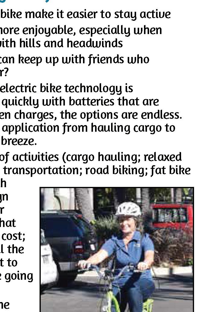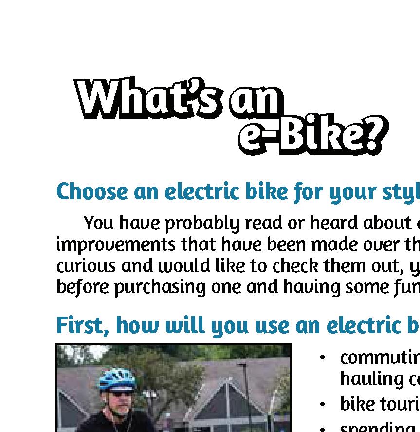 Cover photo by Russ Lowthian; Riding an e-bike can be ecologically rewarding, and healthy way