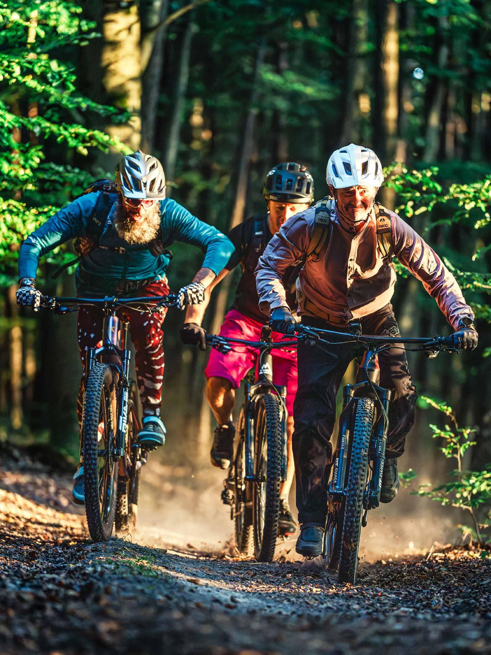 Soll uns niemand kommen, das wäre kein Sport! Wer das sagt, hat noch nie eine Tagestour auf dem E-MTB mit über 1000 Höhenmetern oder eine schnelle Stundenrunde nach Feierabend auf den Hometrails absolviert. Das sagen auch die Forscher. E-Biken ist gesund, gut für Herz und Kreislauf, gelenkschonend und stimmungsaufhellend. So spricht nichts dagegen, auch weiterhin auf breiten Stollen Wald- und Feldwege, Trails und Bikeparks zu erkunden!