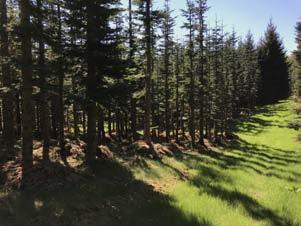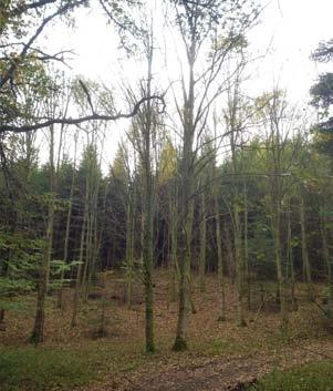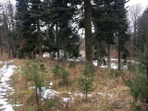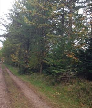 Hasselmus Træer i rækker: Bredden bør øges til 45 rækker, gerne med indplantning af bær/frugt bærende vækster for at gøre dem til mere effektive ledelinjer og spredningsveje. 53c + 53e Gran 1992 Varmekrævende arter Sydvendt skråning ned mod ærtedalen. Bør udtyndes kraftigt, alternativt sløjfes. 52r Nobilis pyntegrønt 1986