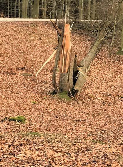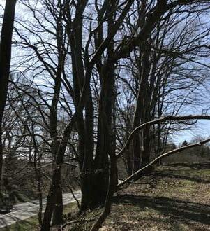 Store træer langs veje og stier, der vurderes at være farlige for publikum, kan med fordel reduceres til 510 meter højstubbe. F.eks. ved at sprænge toppen af.