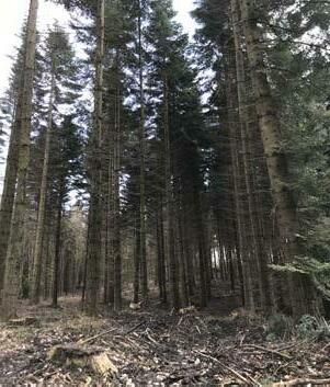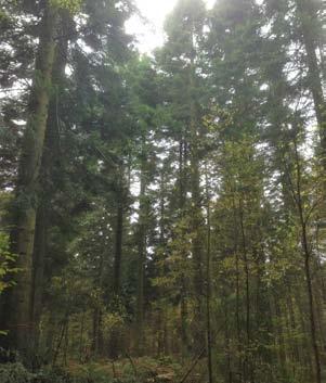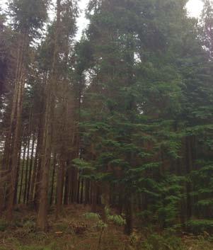 Nåleskov og pyntegrønt Store dele af vildskovsområdet er i dag bevokset med nåleskov og pyntegrønt. Svampemæssigter disse arealer af mindre betydning. Men der forekommer selvfølgelig en række svampearter knyttet til nåletræerne og de sparsomme mængder af dødt ved i områderne.