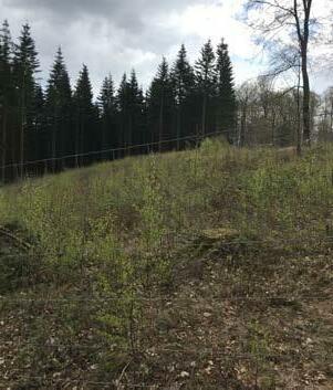 Varmekrævende arter Landskabet tegner en uformet skråning, der mod syd munder ud i Røjle Maen. Skråningen har en fin solindstråling og dermed gode muligheder for varmeelskende arter. Det anbefales at rydde den nederste del af bevoksningen 51c svarende til bredden af 51c gra79. For 44m anbefales at sløjfe pyntegranbevoksningen og plante blandingsskov/krat hassel, røn, slåen, tjørn, og vild æble på bakken. Etableres et godt dække af græs og star vil dette mindske hastigheden for opvæksten af skov. 44i + 44p 42g + 42h 52h + 53f + 53k