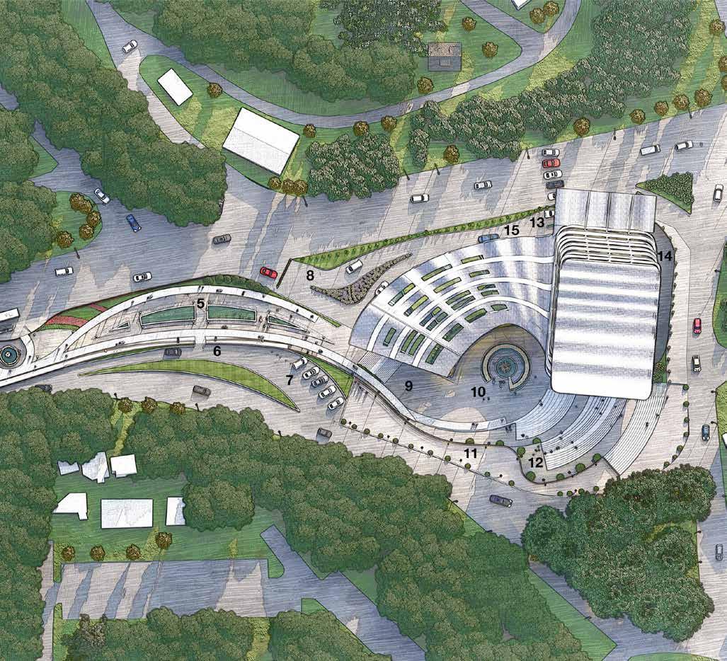Das architektonische Konzept des Rampenmuseums zielt darauf ab, einen funktionalen und visuell ansprechenden Raum zu schaffen, der das Besuchererlebnis steigert. Der Entwurf sieht eine Reihe von Rampen vor, die als dynamisches Erschließungssystem dienen und die Exponate auf eine einzigartige und ansprechende Weise miteinander verbinden.