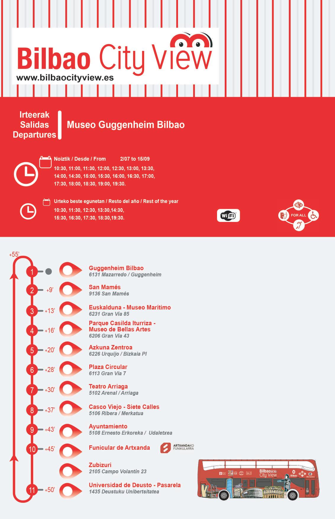 VIP lounge of BEC!, Bizkaia’s tourist offices, hotels in Bizkaia, some hostels, restaurants, bars, Bilbao tourist bus, Artxanda Funicular, fashion shops, etc.