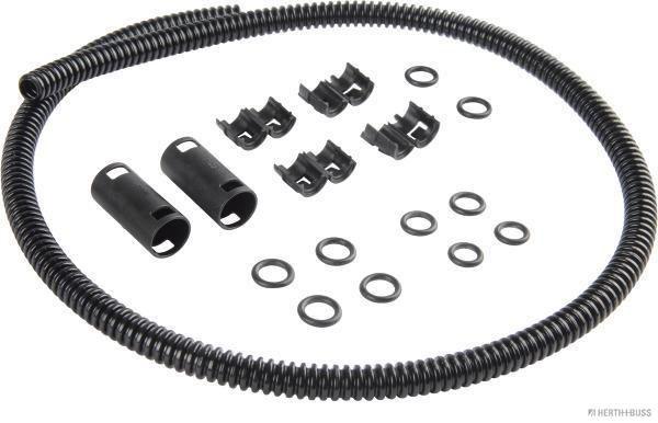 Reperasjon for lekkasjer på vindusspylerslangen. 50 cm slange som kuttes til ønsket lengde, O-ringer i 4 forskjellige dimensjoner, rørforbindelsesstykker og monteringsklips.