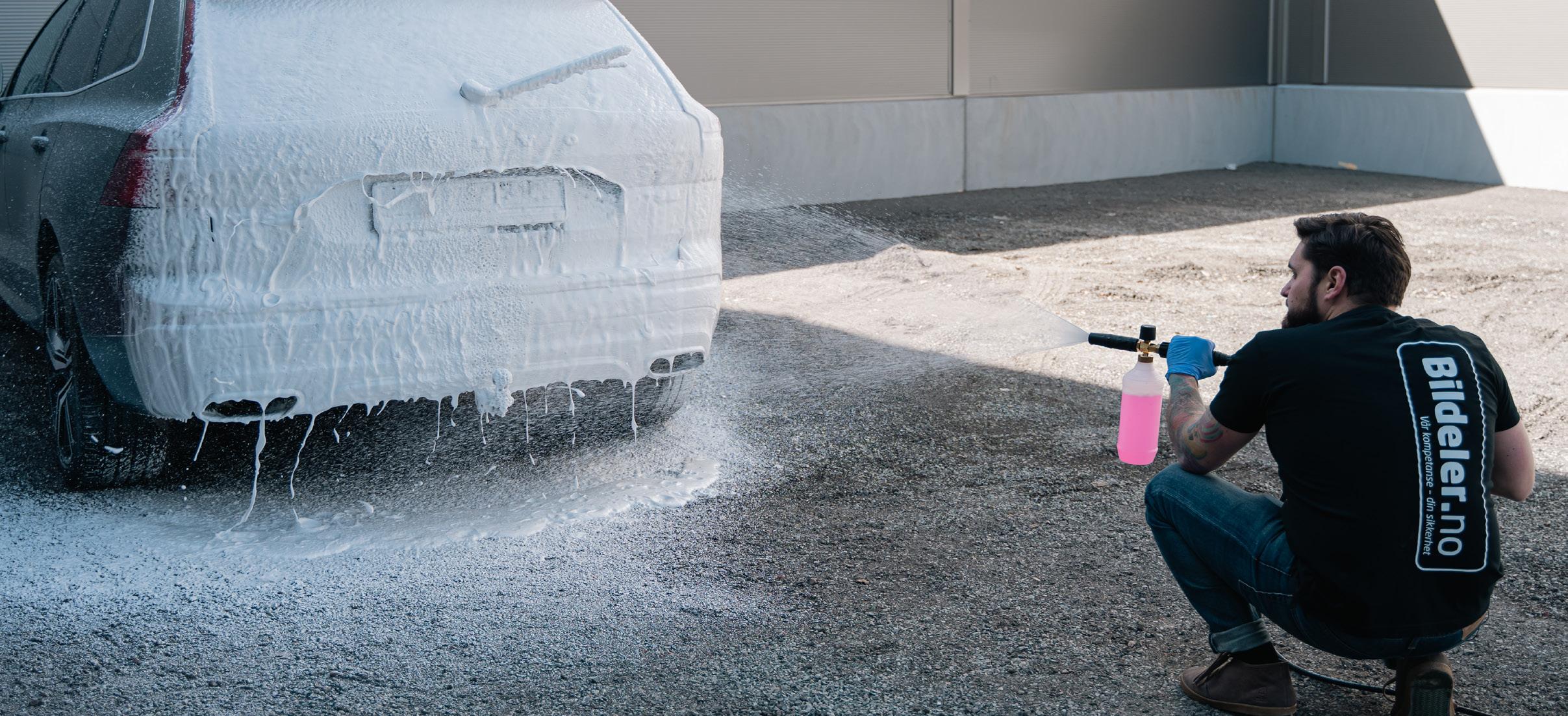 • Legg gjerne skum over hele bilen og la det virke før avspyling.