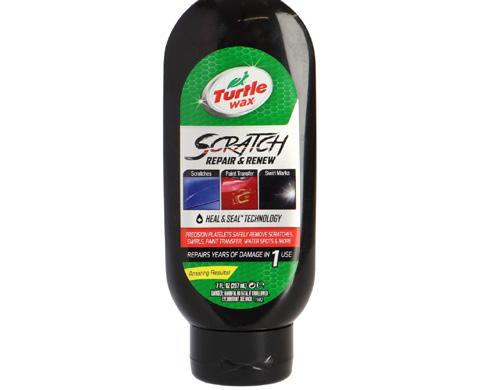 Den første ripefjerner som ikke bare fjerner riper, men også forsegler området. Turtle Wax Scratch Repair & Renew reparerer lette til middel riper, forsegler behandlet lakk og gir permanent behandling.