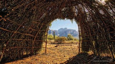 The Museum has created an authentic Apache Village exhibit outdoors that includes t wo wickiups and a cooking area. The exhibit illustrates Apache culture with an emphasis on the Apache home and family. The Apache People consider the mountains sacred and the Superstitions are one of four mountains which mark their ancestral territor y. This display experience is intended to help educate the communit y about their rich culture. To complete the exhibit, a har vest of Red Willow, Yucca, Bear Grass, and Thatch were provided by the San Carlos Apache Tribe. The Apache Village exhibit was made possible by a grant from
