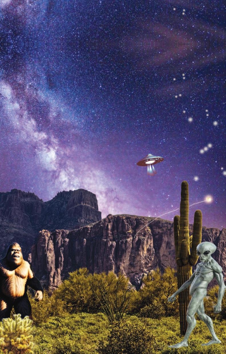 The Superstition Mountain Museum rests on the west end of the aweinspiring Superstition Mountain in central Arizona. The area, approximately 35 miles east of Phoenix on the historic Apache Trail (Hw y 88), is full of legends, histor y, and intrigue.