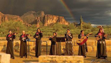 Local residents and visitors alike enjoy revisiting histor y in the shadow of the might y Superstition Mountains.