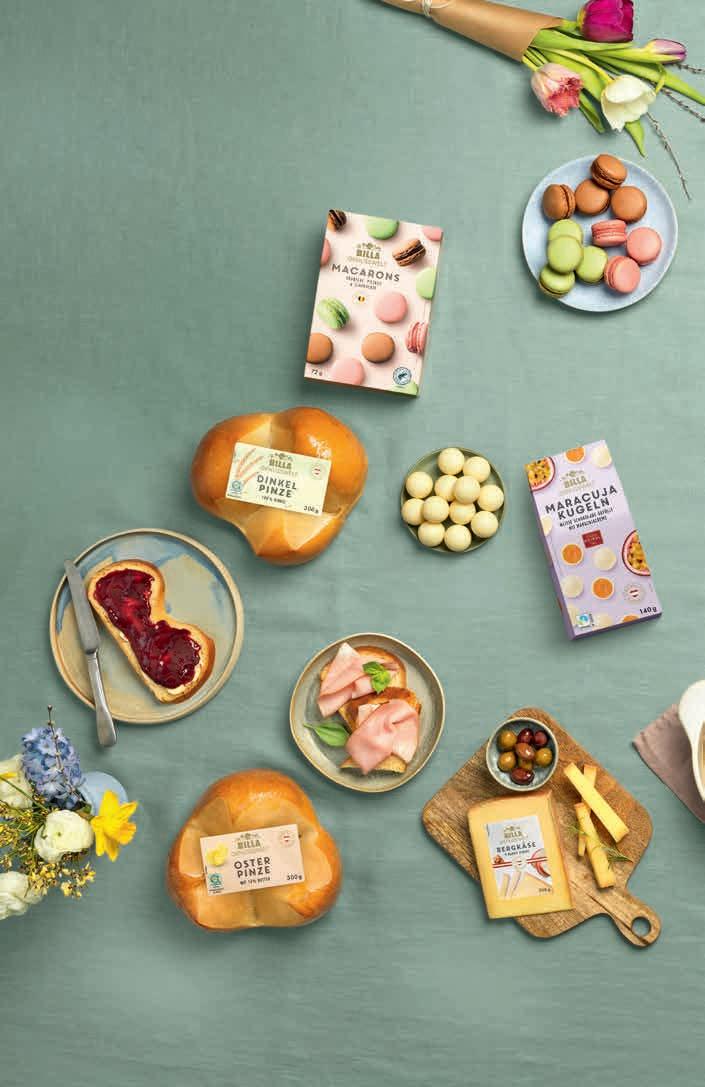 PREMIUMQUALITÄT -070 349 4.19 BILLA GENUSSWELT Bergkäse 200 g Stück (1 kg 17.45), niedrigster 30-Tage-Preis: 3.14 349 BILLA GENUSSWELT Dinkelpinze 100 % Dinkel, 300 g Stück (100 g 1.16) 349 BILLA GENUSSWELT Osterpinze mit Butter 300 g Stück (100 g 1.16) 269 FREITAG & SAMSTAG 202 BILLA GENUSSWELT Macarons 72 g Packung (100 g 3.74/2.81) 399 FREITAG & SAMSTAG 299 BILLA GENUSSWELT Schokokugeln Maracuja 140 g Packung (100 g 2.85/2.14)