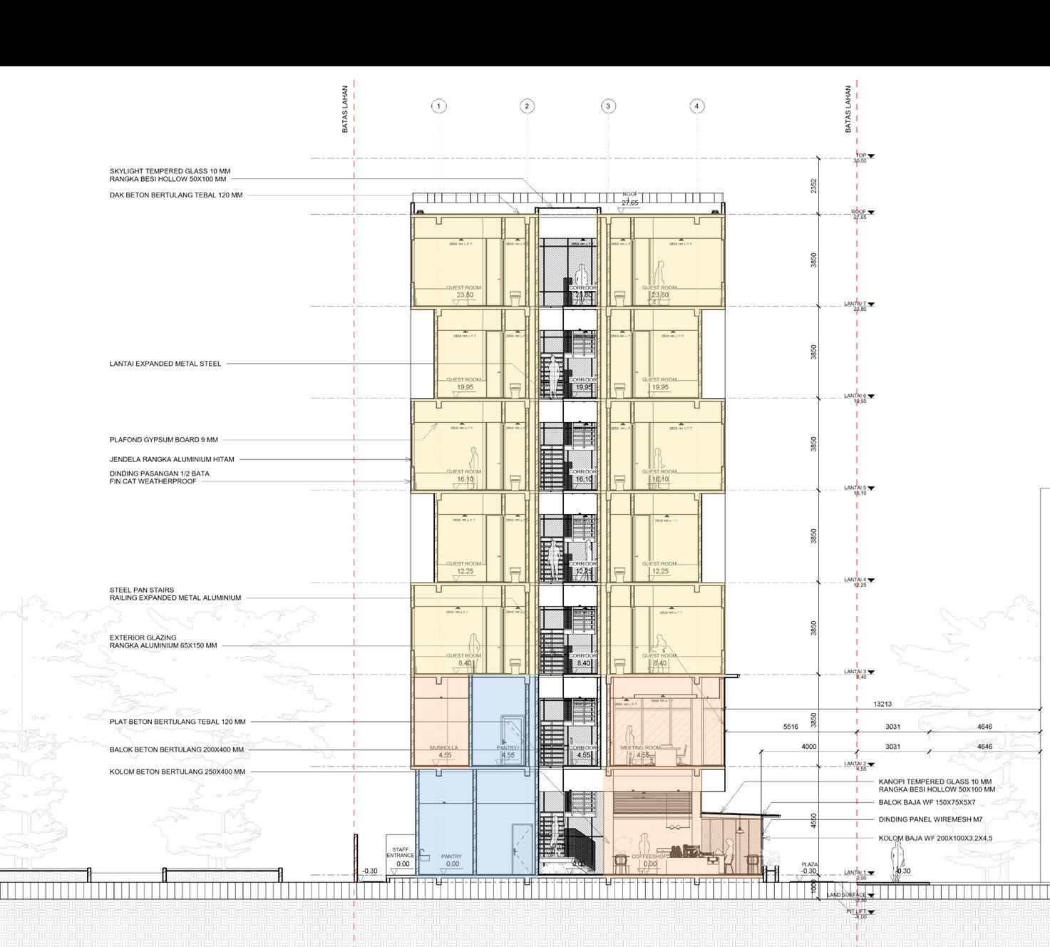 Manggarai Station, proposed to be the central station in Jakarta, will enhance community mobility and intermodal connectivity, driving the need for accommodation in the surrounding area. Micro-concept budget hotels are being proposed as a solution for tourists seeking budget-friendly yet functional accommodation for short stays. The hotel's location near an elevated pedestrian walkway integrated with public transportation makes it easily accessible to pedestrians and transit passengers at Manggarai Station. With the implementation of Transit Oriented Development (TOD), the presence of this hotel is expected to boost the economy and support development in the Manggaraiarea.