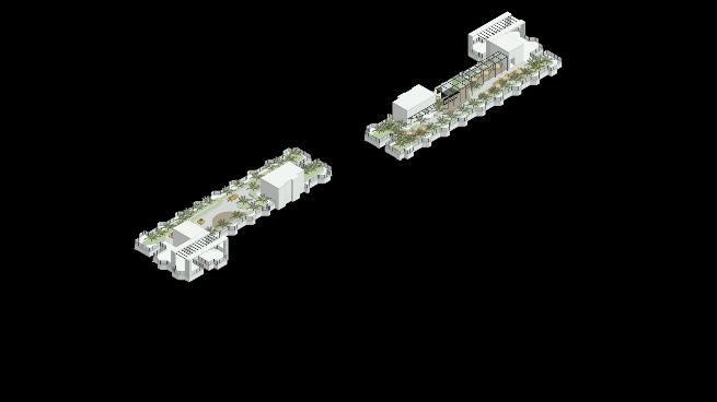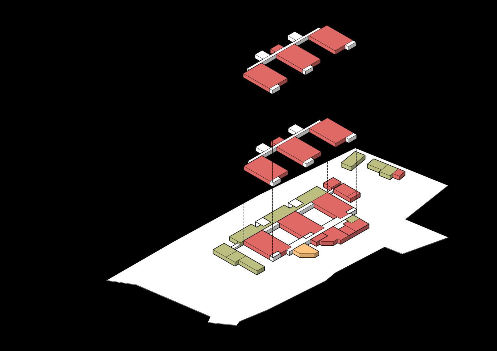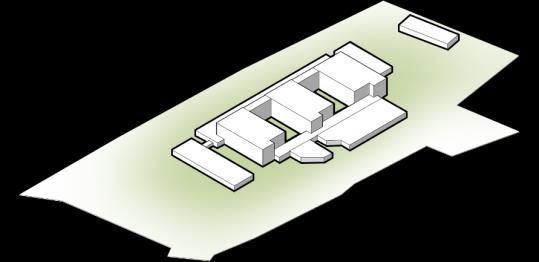 The building mass is elongated to follow the shape of the site, creating circulation space betweenbuildingplots.