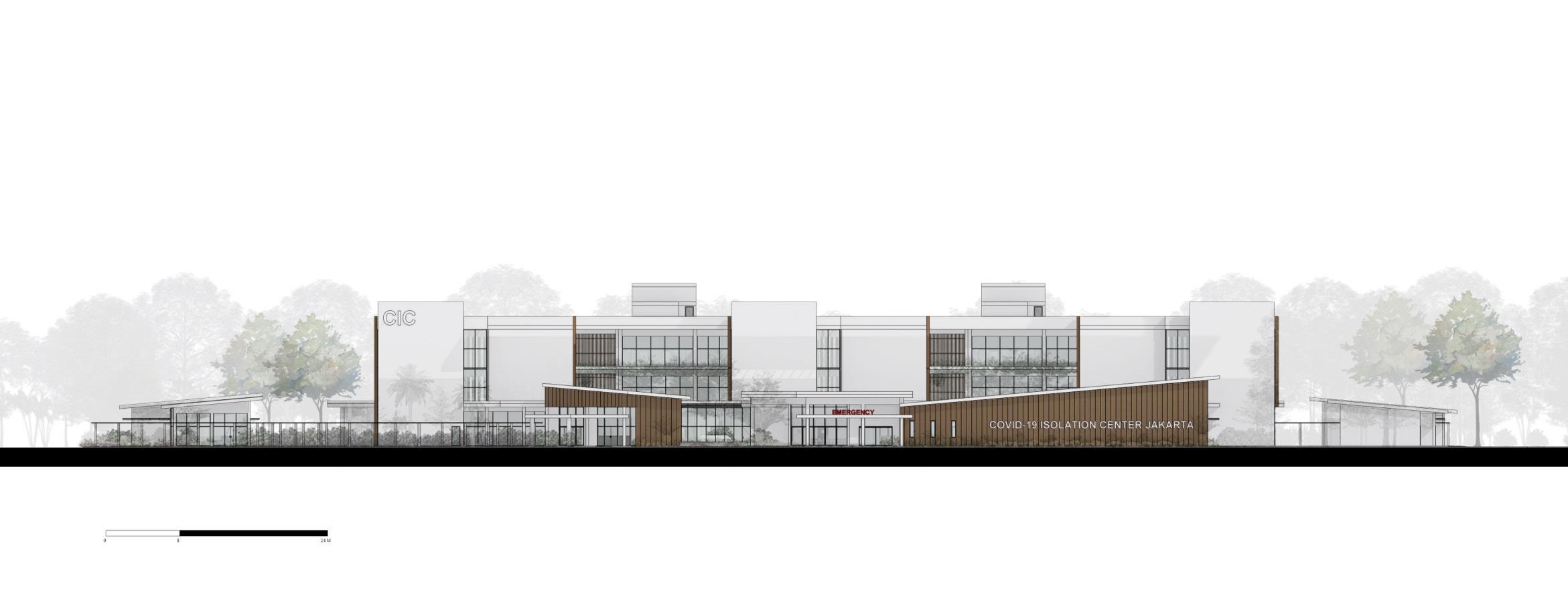 The addition of a green area creates a new view of the site and can various sides of the building.