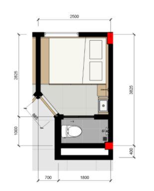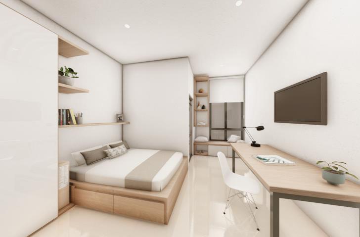 Room sizes are made small to save space but remain functional with compact furniture modules forstoringitems.