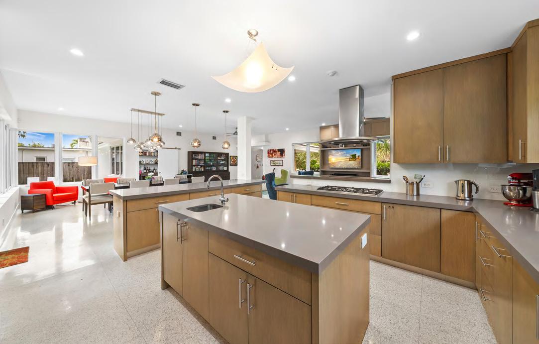 4595 Jefferson Avenue offers 4 bedrooms and 3 bathrooms, thoughtfully designed around an open-concept kitchen that flows seamlessly into a spacious living area—perfect for both entertaining and everyday living. The ideal floor plan features a private primary suite designed as a true retreat, offering comfort and tranquility. Sun-filled interiors showcase stunning terrazzo floors, generous living spaces, and a balanced layout that feels both refined and inviting. The expansive kitchen serves as the heart of the home, complete with a large island and effortless flow for gatherings large and small.