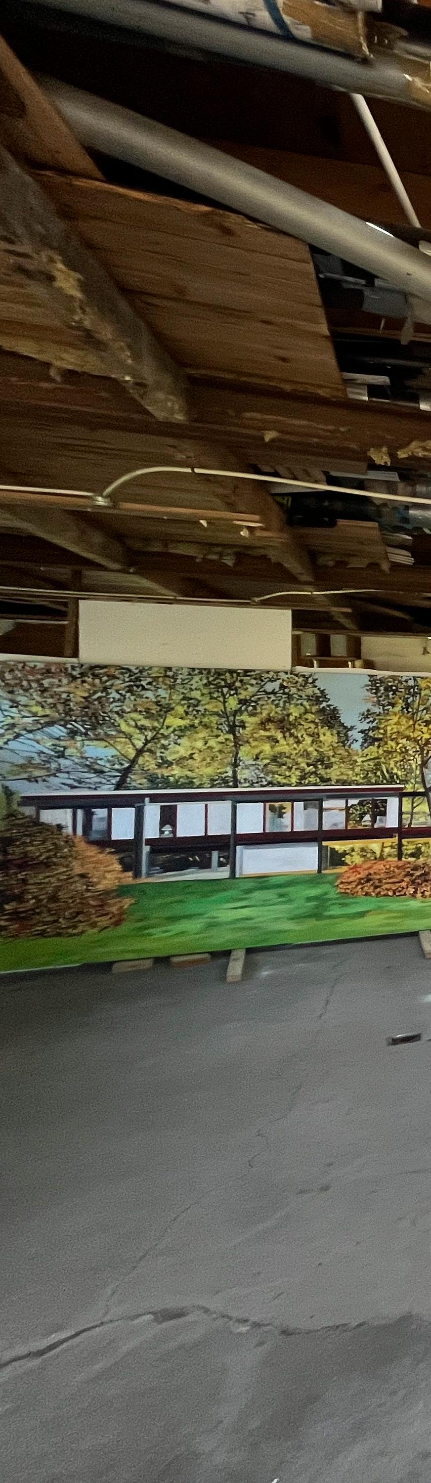 Den bedste bygning var det gamle fyrrum, som husede en kæmpe kedeltank og fjernevarmeanlægget. En lokal gartner overtog heldgvis al udstyret og dermed fik jeg et isoleret 80 m2 malerværksted med 6 meter til loftet. Der er dog ikke varme på i hverken dette eller de andre værksteder, så om vinteren er det på med voksenflyverdragten –eller arbejde på mindre værker på mit kontor i huset.