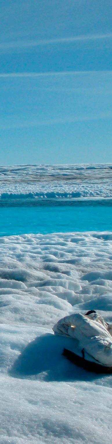 PÅ FORSIDEN Jessie Kleemann, Arkhticós Dolorôs 2019, still fra videoperformance ved Sermeq Kujalleqgletsjeren ved smeltevandssøen Blue Lake, Ilulissat. FOTO OG FILM Chelsea Reid og Tyler Levesque.