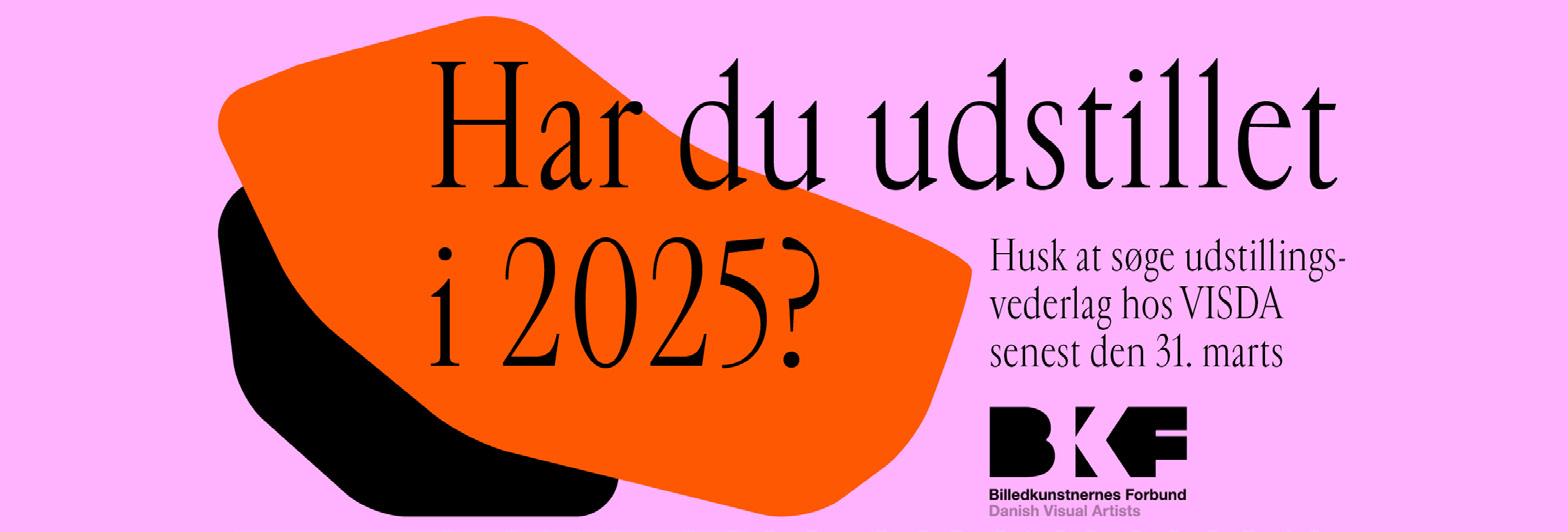 I 2023 udformede BKF og Kunstnernes Fagforening i samarbejde med VISDA en ny ordning, hvor billedkunstnere modtager et ekstra vederlag for udstillingsaktiviteter i Danmark. Som billedkunstner ansøger du ved at indtaste data om de udstillinger, du har haft i Danmark i det forgangne år. Jo mere aktivitet, des større vederlag. Du kan ansøge om tillægsvederlaget frem til den 31. marts. Læs mere på VISDA.dk