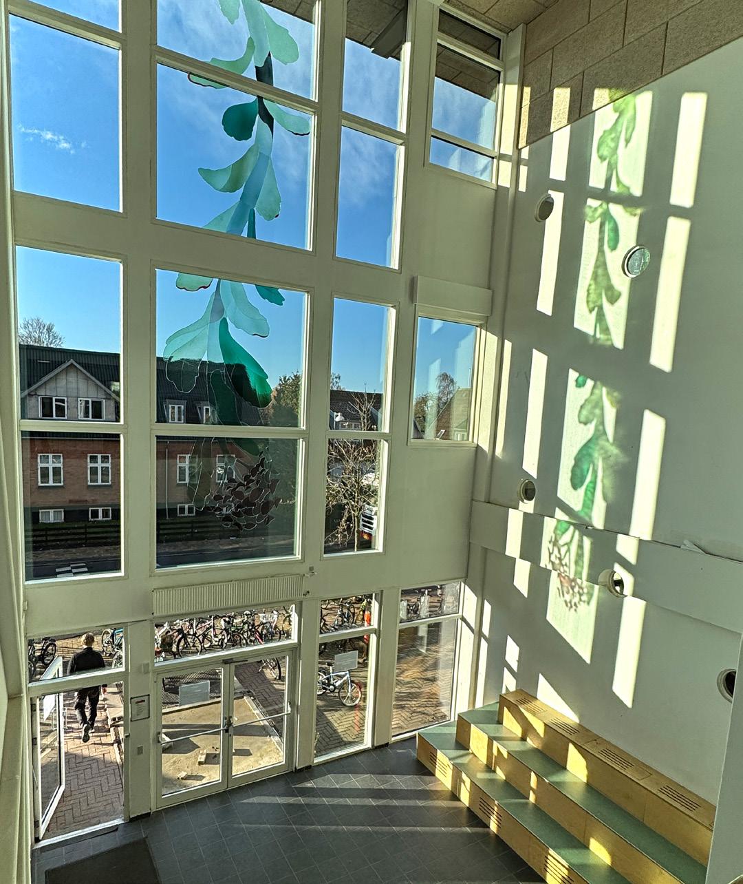 Lerchesgade – WoodHub , en bygning til Bygningsstyrelsen, tegnet af C.F. Møller Architects – et stort træbyggeri. I den forbindelse har jeg udviklet et stedsspecifikt værk – en proces, jeg oplever som særligt spændende. Jeg har i mange år samarbejdet tæt med Phillip C. Reiner, som er arkitekt og geometriforsker. Vores samarbejde er for mig en produktiv ping-pong: skitser sendes frem og tilbage, modeller, tegninger og spørgsmål åbner nye spor, indtil en løsning manifesterer sig. Samtidig er jeg