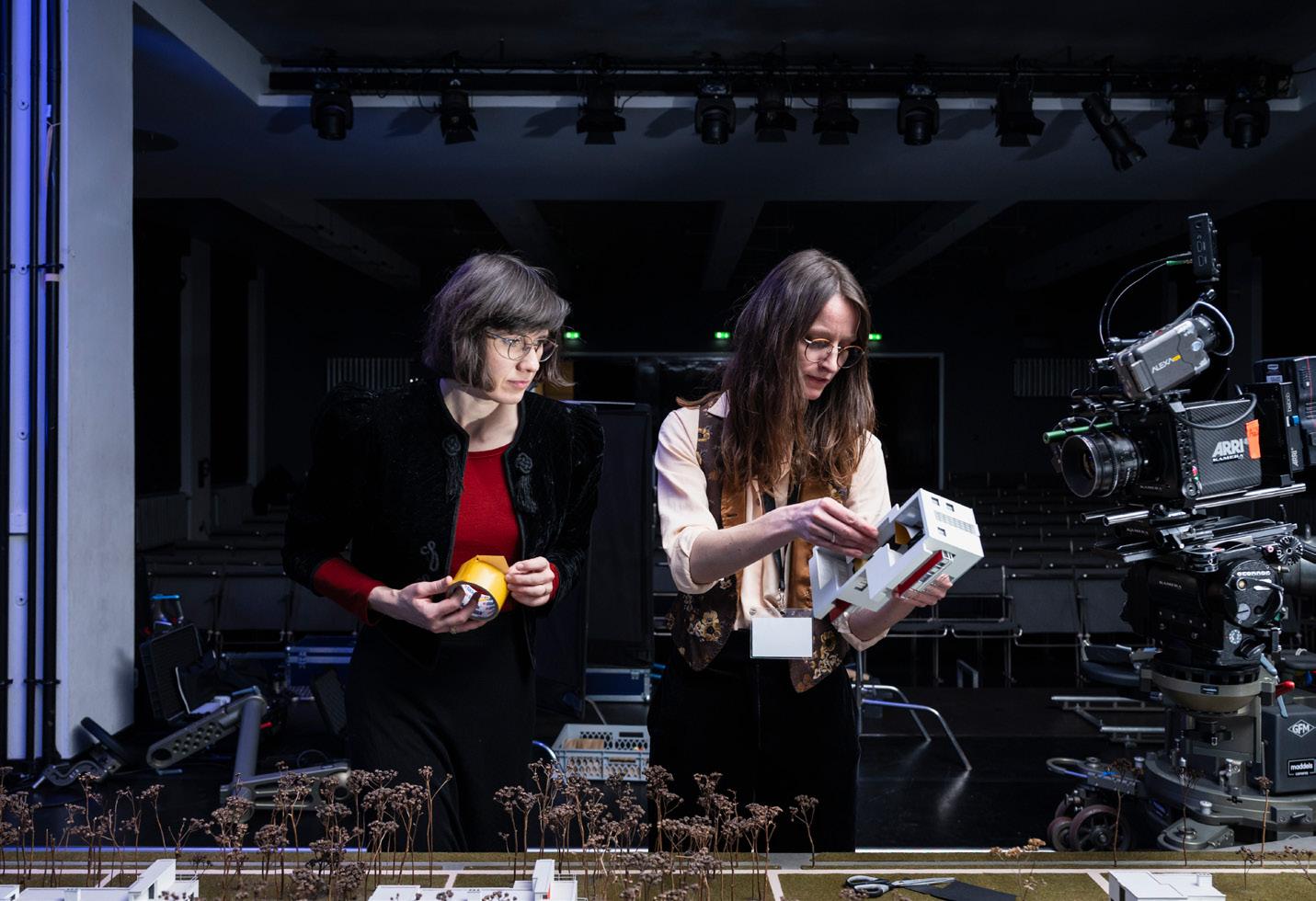 KA: “Til det nye filmværk har vi filmet en arkitekturmodel af det hus, som vi har boet i, når vi har været i Dessau. Det er en Bauhaus-professorbolig tegnet af Walter Gropius, hvor Oskar Schlemmer har boet med sin familie, mens han var ansat på Bauhaus-skolen. Når man opholder sig i huset, får man en følelse af at være udstillet, fordi bygningen er UNESCO-verdensarv og der er mange turister, der går og kigger ind ad vinduerne. For eksempel, når man kommer ud fra badeværelset, er der sådan nogle kæmpe vinduer, hvor folk kan kigge direkte ind. Den situation har vi taget med i en scene i filmen, hvor der er nogen, der er i bad og bliver betragtet udefra.”