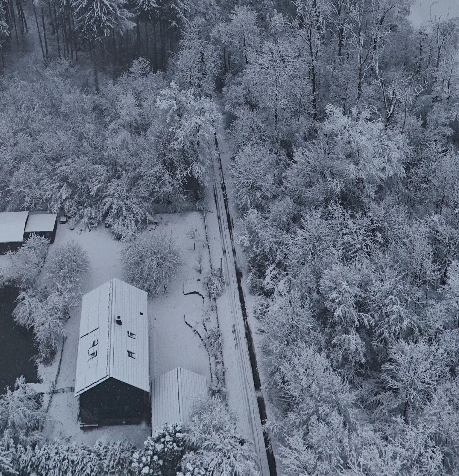 Mit studio ligger tæt på München – en god halv time væk med toget, tæt på byen, men dog et sted hvor alt ofte sker og opleves i et andet tempo. Skov på tre sider, meget stilhed, et roligt holdepunkt. Studiet ligger direkte op ad vores hjem, og netop nærheden til familien gør det til et fleksibelt arbejdssted: Jeg kan begynde tidligt, fortsætte sent, være til stede indimellem – og så dykke tilbage i arbejdet.
