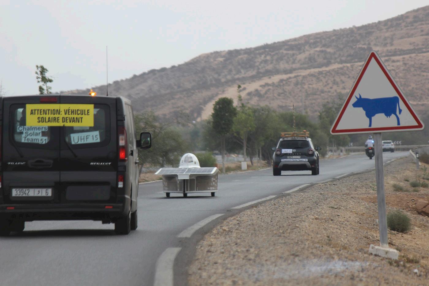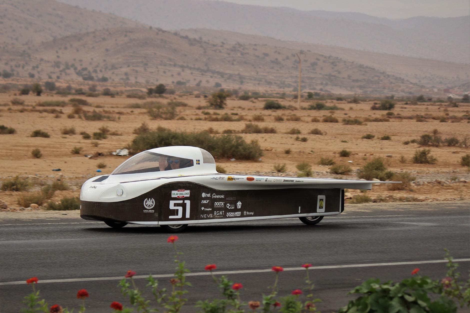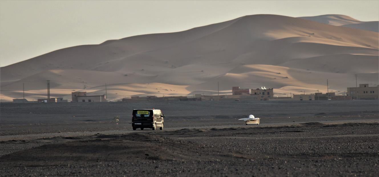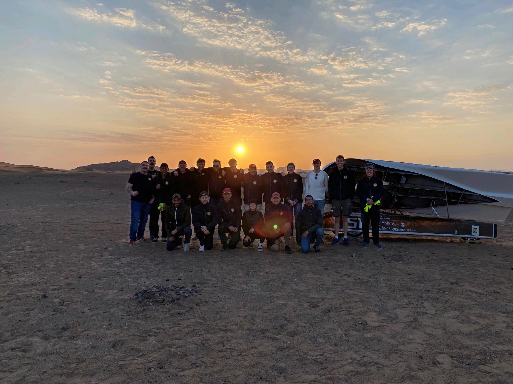 load and set a new goal. Full focus was placed on going to Zolder, Belgium in August 2021 and participating in the European Solar Challenge for a rock-hard 24h endurance race where the team took fifth place. About a month later, Sköll would roll over the starting line in Agadir, Morocco and start a 2500km long race with only the sun as fuel. Five days later, after a magnificent journey across the Atlas Mountains and through desert landscapes, Sköll rolled over the finish line.