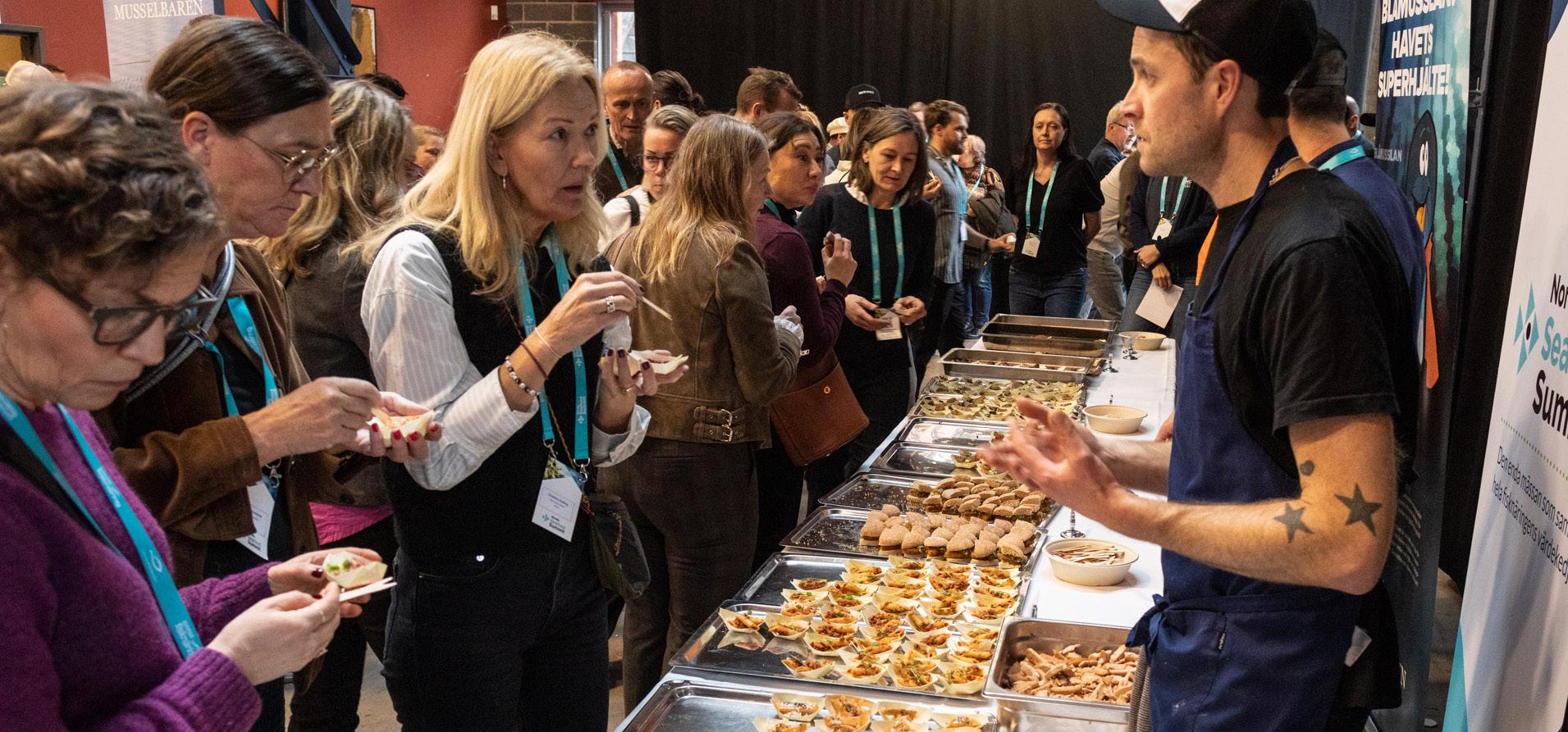 och några till, så många besökte förra årets mässa. Där till fanns 75 utställare och tillsammans gjorde vi evenemanget till en succé. Under två intensiva dagar blev mässan en arena för kunskapsutbyte, nätverkande och innovation inom sjömatsbranschen. Fokus dag två låg på offentliga kök och mässan avslutades med en uppskattad smakprovning för kockar och måltidspersonal från skola och förskola.