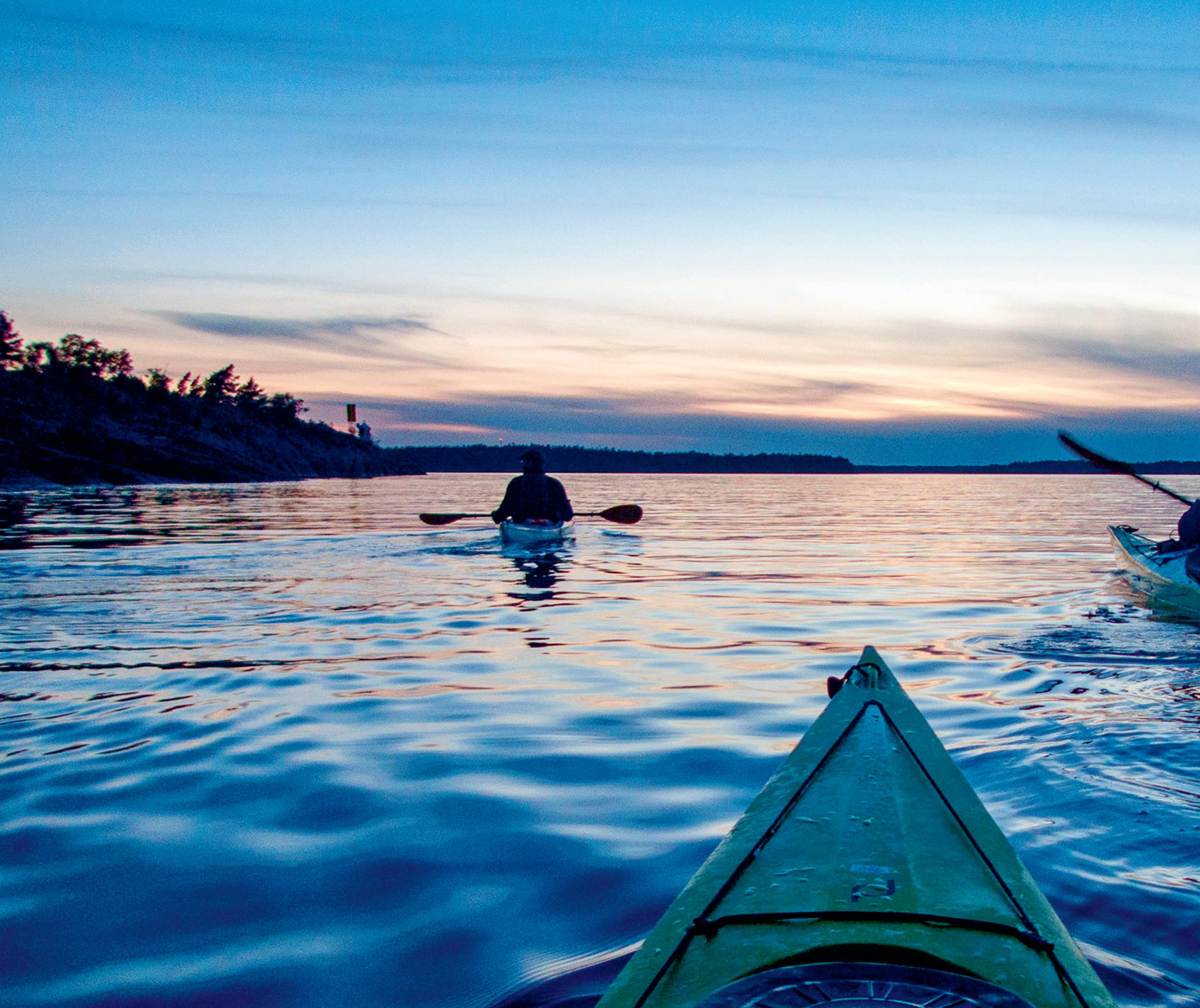 » Skärgårdarna löser av varandra längs vår svenska kustlinje, och det finns flera bra utgångspunkter för den som vill upptäcka öarna med kajak. Ett sådant ställe är Arkösund i Östergötland. Här, strax norr om Sankt Annas skärgård, kan du ha vandrarhemmet, campingen eller hotellet som bas, och ägna dagarna åt att utforska skärgården, gå en kurs i SUP-paddling eller hänga med på guidad midnattspaddling i havskajak. Givetvis finns uthyrning av allt du behöver, och är du redan en van paddlare kan du ge dig i väg på egna äventyr. Men att hänga med på guidad