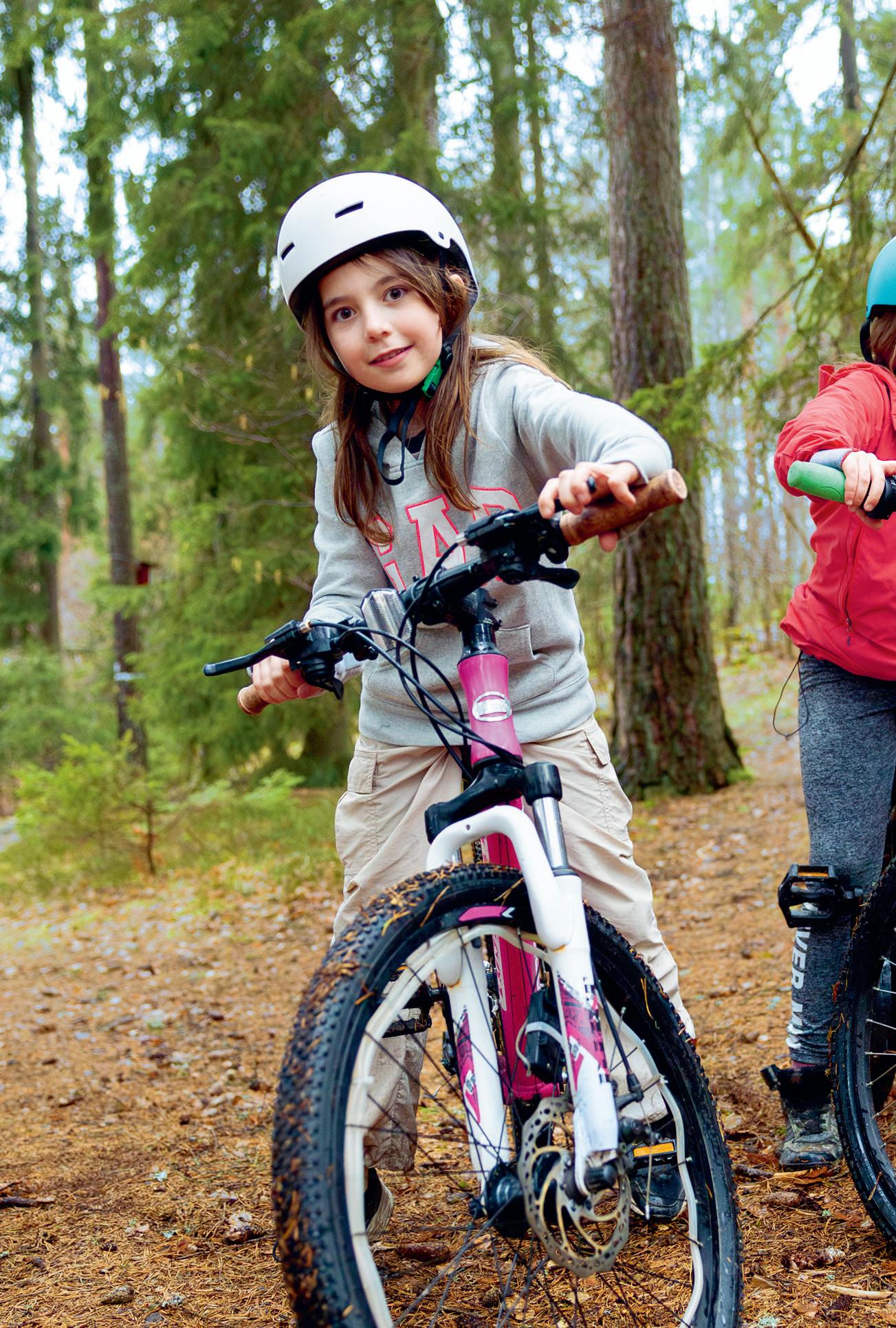 Det blir många utflykter till Lida friluftsgård för Ebba och Izabelle. Med cyklarna genom skogen tar det 20 minuter.