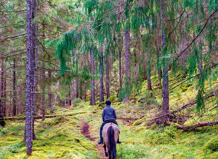 » Tivedens skogar är trolska i sig, men från hästryggen blir de än mer magiska. Gården Ösjönäs är Sveriges enda privatägda fastighet som ligger helt omgiven av nationalparksskyddad barrskog. Här kan du hänga med på guidade ridturer i de vackra omgivningarna − med eller utan boende och mat. Hästarna är av olika raser; islandshästar, aegidienberger, tennesse walking horse, paso fino och rocky mountain horse. Skulle du vilja kombinera med andra aktiviteter så finns det en hel del annat att bocka av − eller vad sägs om paddling, cykling, yoga och höghöjdsbana. Och så lite bastu och badtunna på det, efter en lång dag i naturen.