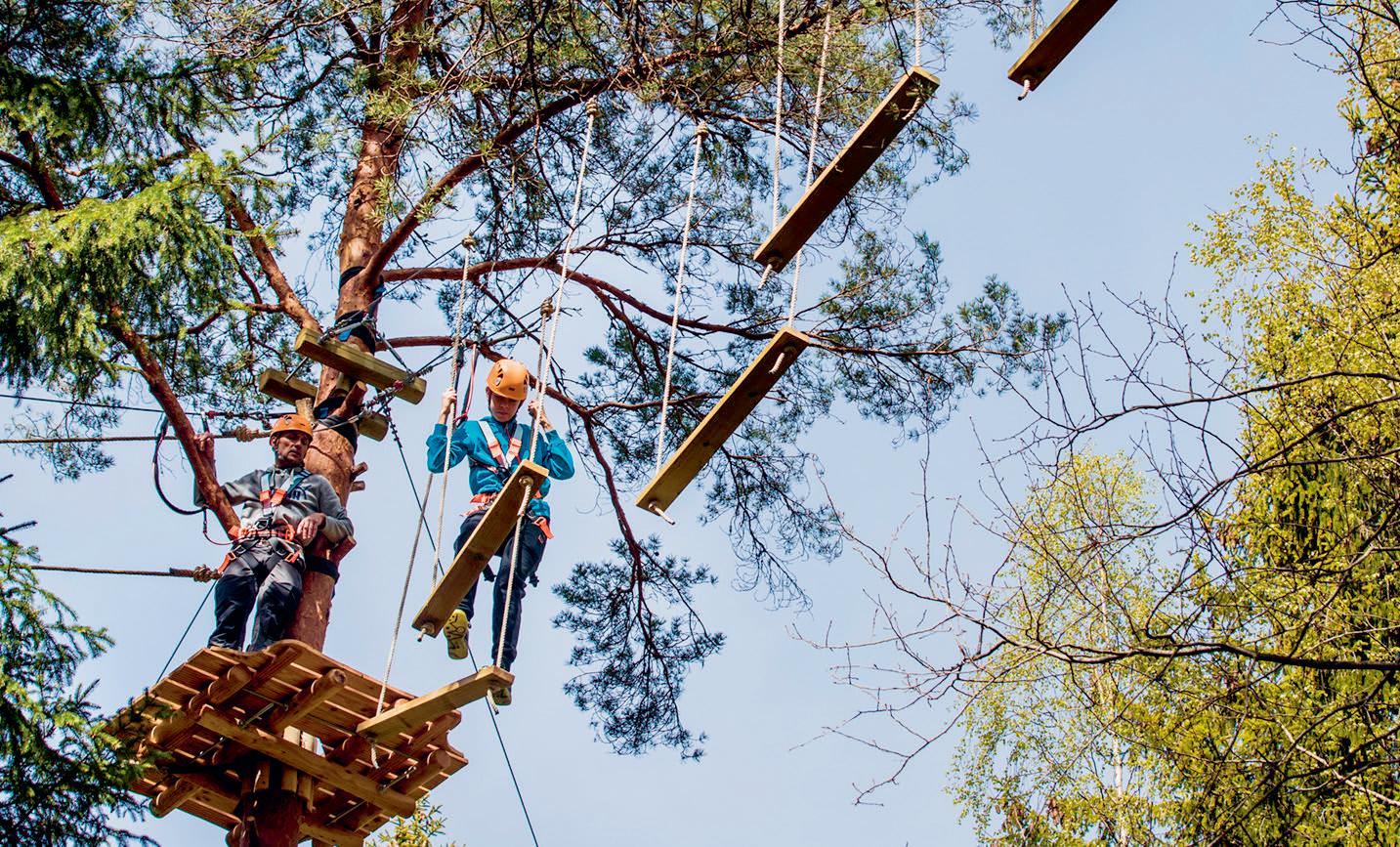 Mälardalen är till exempel Äventyrsbanan i Älta i Stockholm, AccroPark i Lida friluftsgård (läs mer på sidorna 8−9), Go Adventure i Fjällnora utanför Uppsala och Högt & Lågt i Gävle.