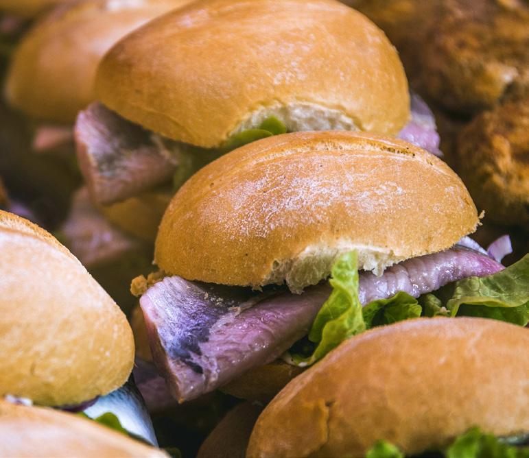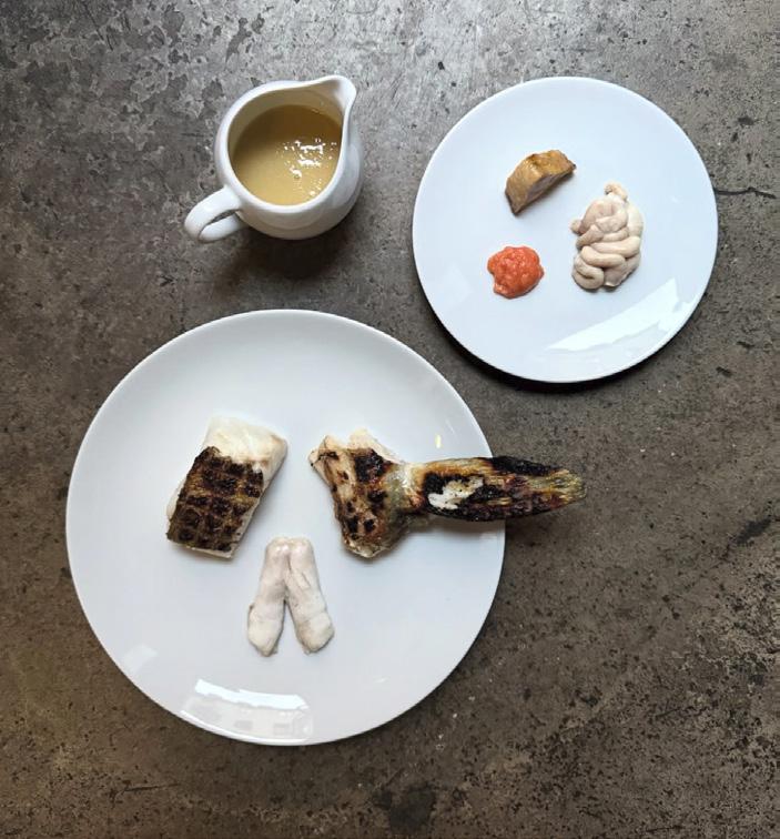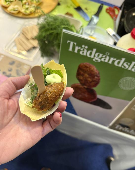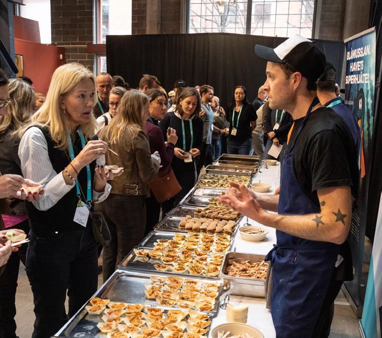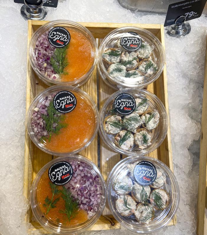Sjömaten är komplex. Vi landar runt 85 olika arter per år men endast fyra arter, (lax, torsk, räkor och sill) står för 64% av vår konsumtion. Endast 17% av den sjömat vi producerar går till konsumtion. Av den pelagiska fisken går en stor del till djurfodersproduktion och av de demersala arterna äts endast ca 50%, filén. Vi förstår att vi behöver bredda vårt sortiment och äta en större andel av fisken, forskning och utveckling av restflöden går också åt det hållet. Vi köper allt mindre hel fisk och mer pannfärdigt, där restprodukter har en för framtiden viktig plats. I vår trendspaning på sidan 12 är hybridfärser inom sjömatssegmentet kanske inte en nyhet men något som kommer att öka. Vi har tidigare sett Garants fish cakes och Urban delis sillenbergare gjorda på hälften fisk och hälften åkerböna och på NSS dök Trädgårdslaxs små biffar upp, gjorda på bland annat spillbitar av regnbåge från Guldhaven och musselpulver från Musselfeed.