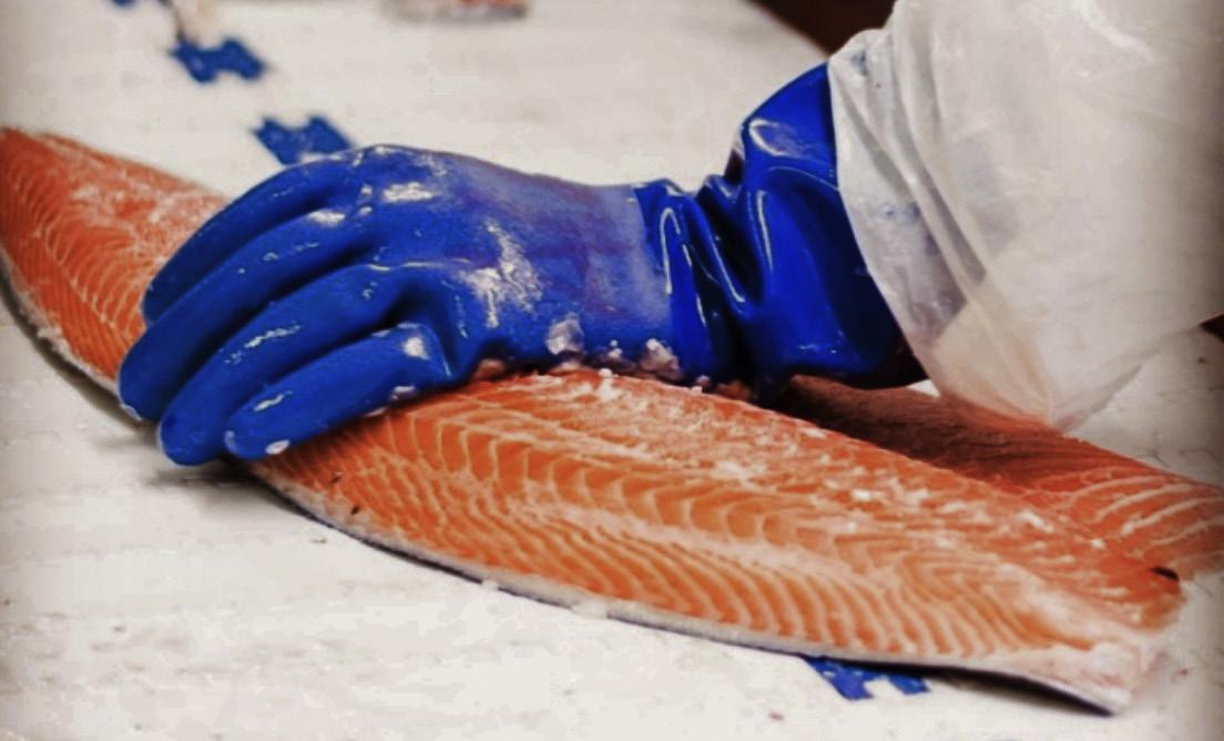 – Vi filear hel fisk, vanligtvis sej, och portionerar upp. Sen får